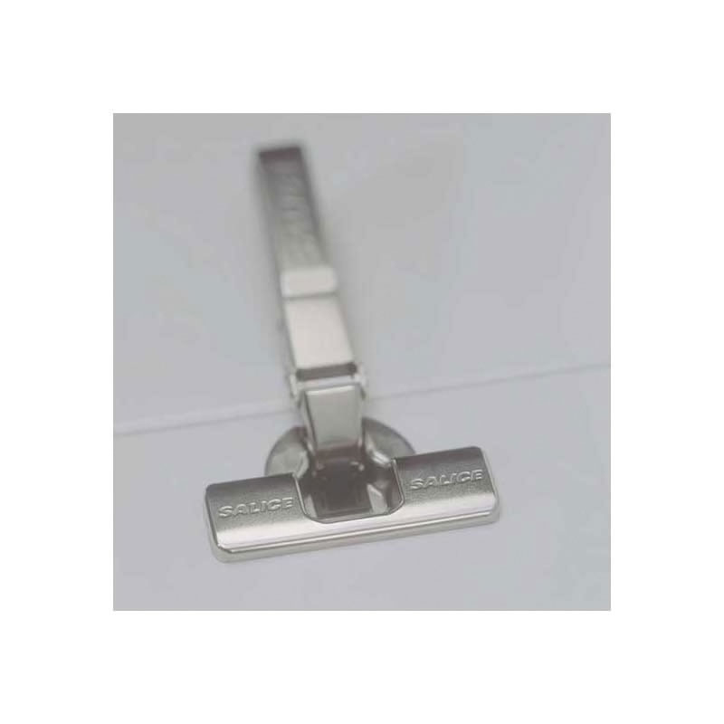 La charnière SILENTIA+ clipsable avec amortisseur intégré constitue une révolution technologique de grande importance.Cette charnière permet une fermeture efficace de la porte, puis l'arrête en douceur avant de toucher le caisson.