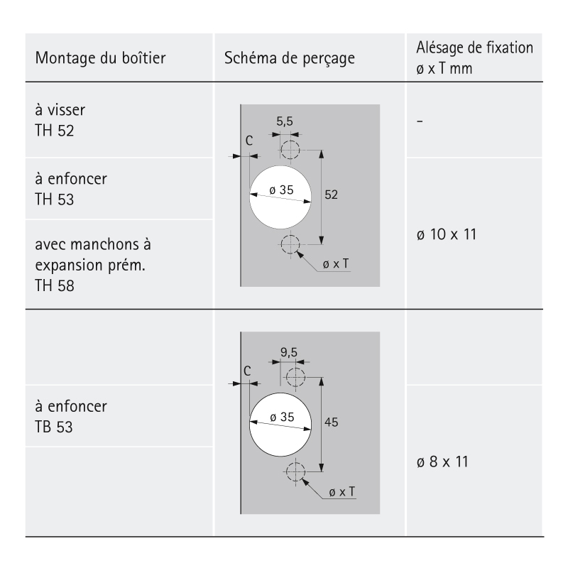 Charnière invisible clipsable avec amortisseur intégré dans le bras.Pour porte épaisse.
