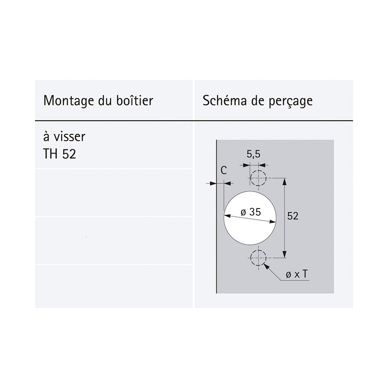 Charnière invisible clipsable Sensys sans amorti pour porte fine.Push possible.