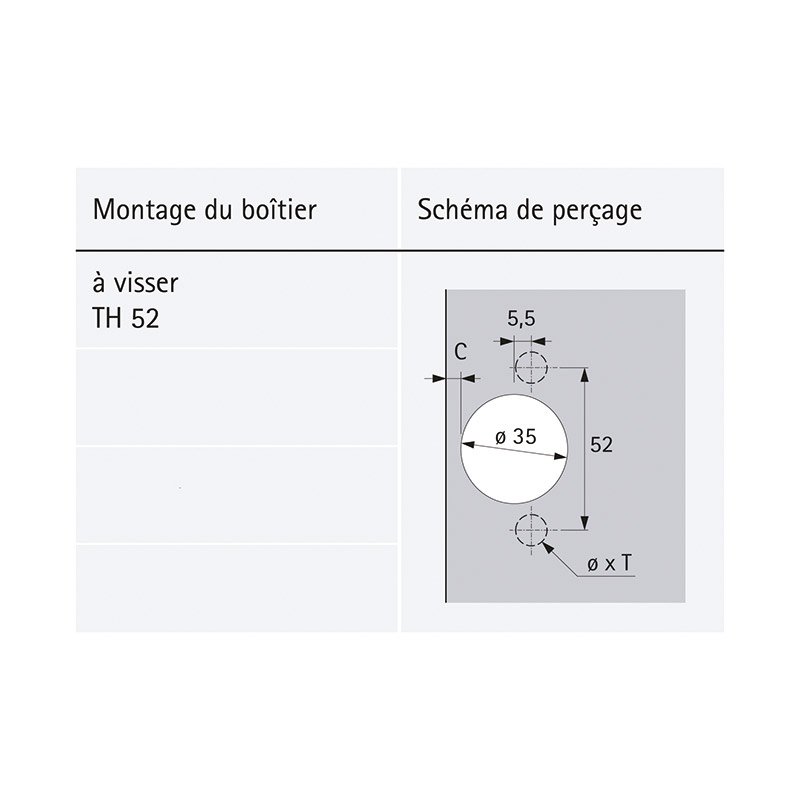 Charnière invisible clipsable Sensys sans amorti pour porte fine.Système sans ressort pour Push To Open.