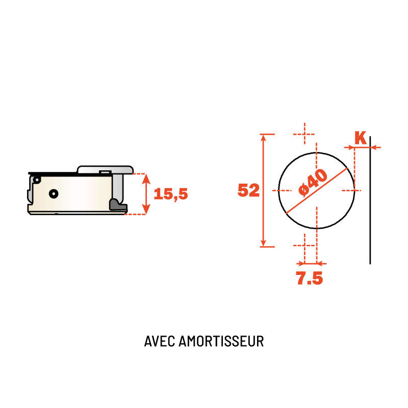 Charnière invisible clipsable.Pour porte épaisse avec ou sans moulure jusqu'à 40mm.