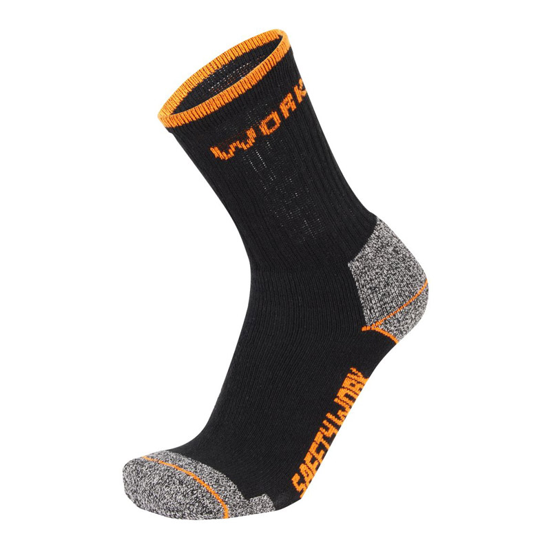 Chaussettes de travail adaptées aux chaussures de sécurité traitement anti bactérien SILVADUR: neutralise les bactéries à l'origine des mauvaises odeurs, efficacité testé jusqu'à 20 lavages tige insérant des élastiques pour un maintien optimal sans comprimer pied bouclette intérieure intégrale Double bord côte pour une meilleure tenue Tige insérant des élastiques pour un maintien optimal sans comprimer pied bouclette intérieur intégrale 57% polyester, 34% coton, 7% acrylique, 2% élasthanne Lot de 3 paires.