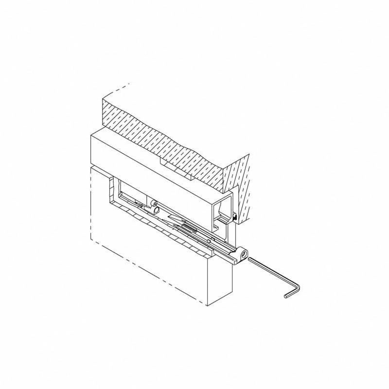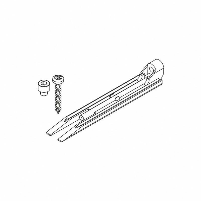 Elle s'utilise avec les garnitures de ferrures Junior 120B et 250B.Clavette de montage pour fixation frontale de portes coulissantes dans le plafond, garniture pour une porte coulissante.Elle permet d'accrocher et décrocher les portes sans avoir à démonter le chassis de la porte ni le revêtement.