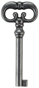 Clé tête rustique "cuisse de grenouille" pour serrure espagnolette 7052, panneton taillé pour variure n.1