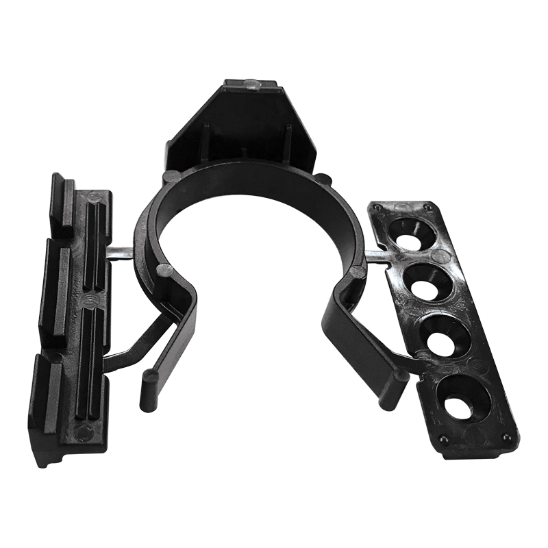 Clips pvc noir sur platine.Pour plinthes en aggloméré. Livré avec 2 platines : 1 à visser et 1 à rainurer.Hauteur 12mm, largeur 45mm.Ecartement 24mm de l'axe du pied.Pour tous pieds Ø 28 à 30 mm.