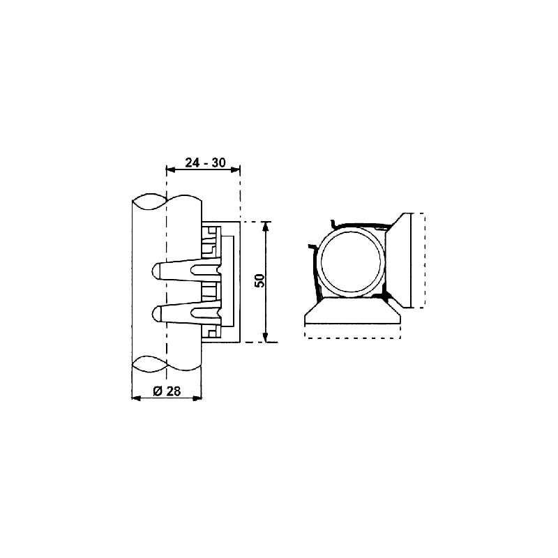 Écartement 24 ou 30 mm de l'axe du pied. Fixation par vis.