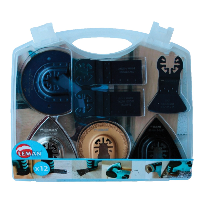 Composition : 1 plateau de ponçage à concrétion carbure (MUL.04019) 1 lame de scie segment moyeu déporté Bi-métal (MUL.04009) 1 lame de scie segment à concrétion carbure (MUL.04016) 1 spatule rigide acier carbone (MUL.04011) 1 lame de scie plongeante bi-métal (MUL.04007) 1 lame de scie plongeante chrome vanadium (MUL.04003) 1 plateau de ponçage corindon (MUL.04020) 5 feuilles abrasives : 2 x Gr 60 - 1 x Gr 80 - 2 x Gr 120 (MUL.04021).