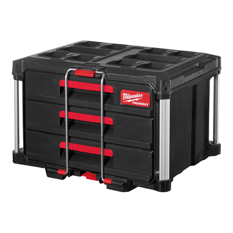 Le coffret 3 tiroirs PACKOUT™ permet d'accéder facilement à vos outils, même lorsqu'ils sont placés au bas de votre système PACKOUT™ Les glissières à billes en acier supportent jusqu'à 11 kg de poids par tiroir La barre de sécurité verrouillable empêche l'ouverture indésirable des tiroirs pendant le transport et permet de fermer les tiroirs avec un cadenas. Chaque boîte est livrée avec un ensemble de diviseurs à réglage rapide qui permettent aux utilisateurs de personnaliser entièrement la disposition des Coins avec des renforts en métal Construit avec des polymères résistants aux chocs pour une meilleure durée de vie sur chantier. Fait partie du système PACKOUT™