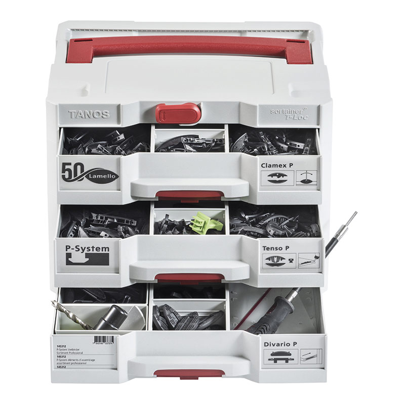 Composition du coffret :- 120 paires de Clamex P-14- 30 paires de Clamex P-14 Flexus- 30 paires de Clamex P-10- 80 paires de Tenso P-14 avec clip- 30 paires de Tenso P-10 avec clip- 20 pièces de Bisco P-14- 20 pièces de Bisco P-10- 80 paires de Divario P-18- Outil de montage / foret / gabarit de marquage Divario- Outil de montage Clamex P- Sortainer T-Loc