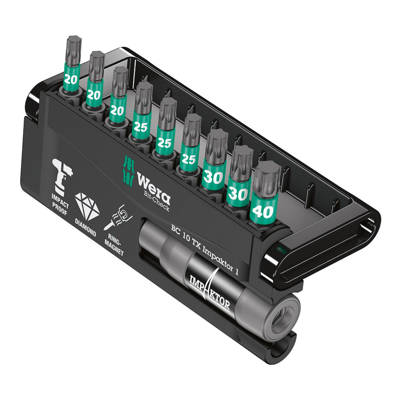 - 9 embouts 867/1 IMP DC : 3 TX20, 3 TX25, 2 TX30, 1 TX40 x 25 mm.