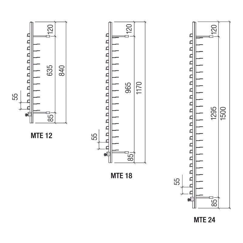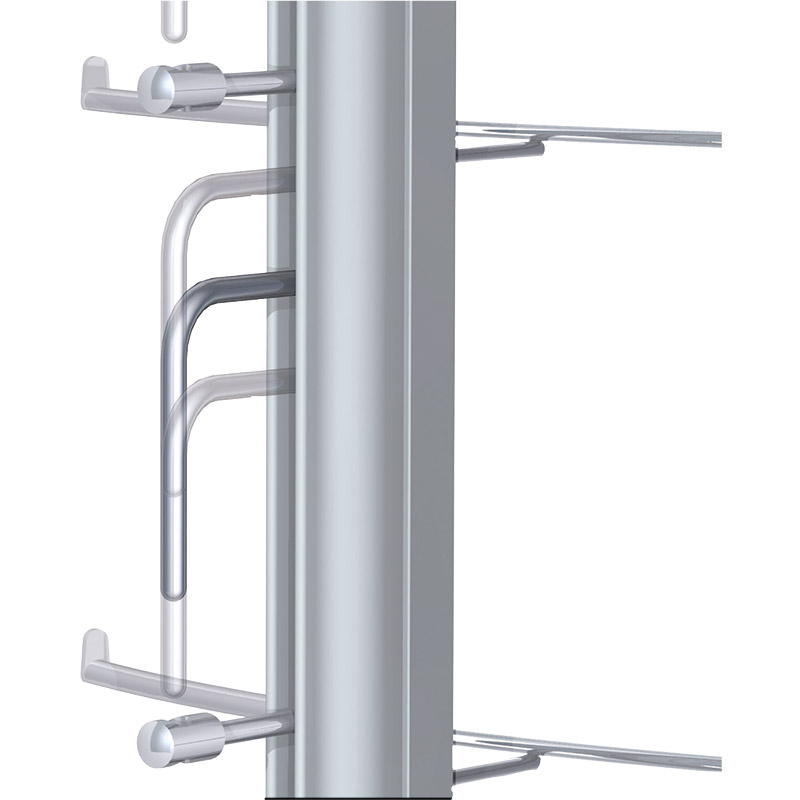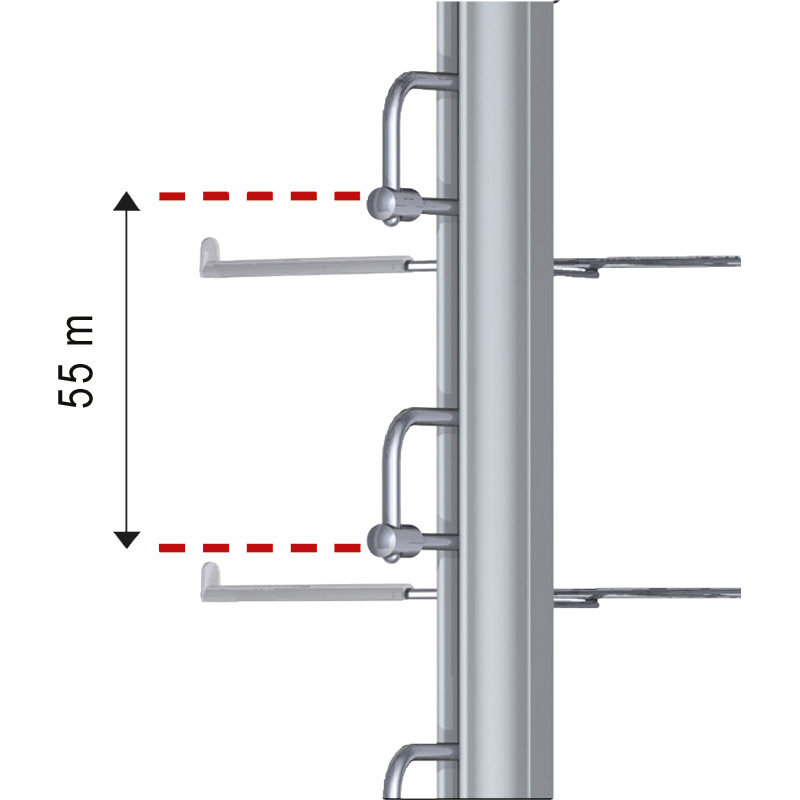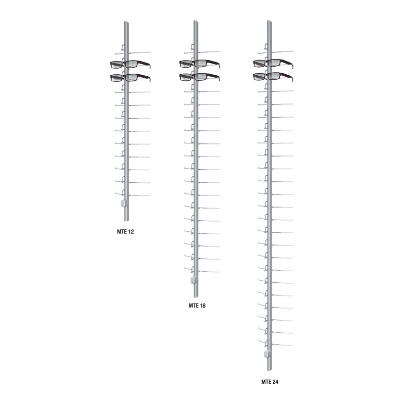 Colonne simple en profilé aluminium, pour fixation murale.Distance entre les supports de lunettes : 55mm.Chaque support lunettes est équipé d'un manchon anti-glisse.Colonne pour 12, 18 ou 24 lunettes.Livré avec supports repose branches lunettes en acier chromé.Livré sans fixation (à commander séparément).Pour les colonnes avec verrouillage, la hauteur de la patte de verrouillage est de 18 mm.