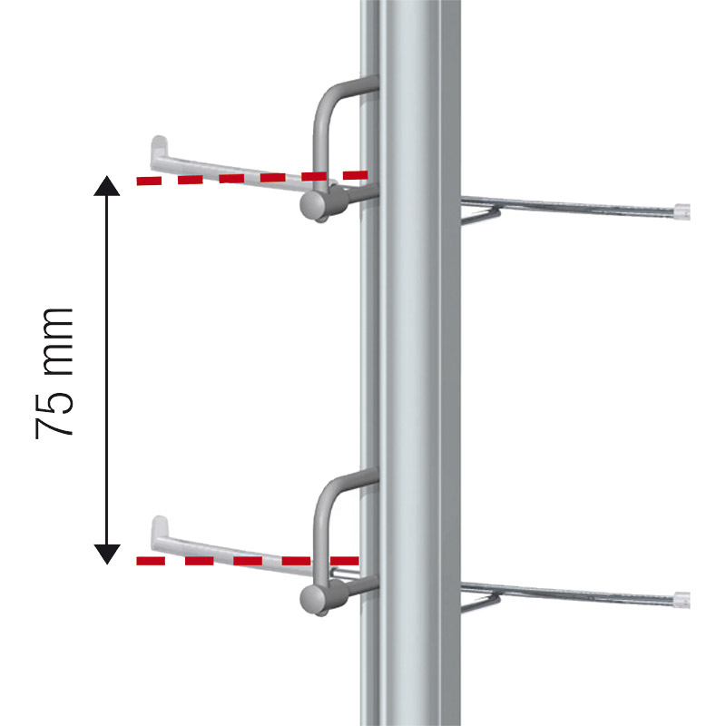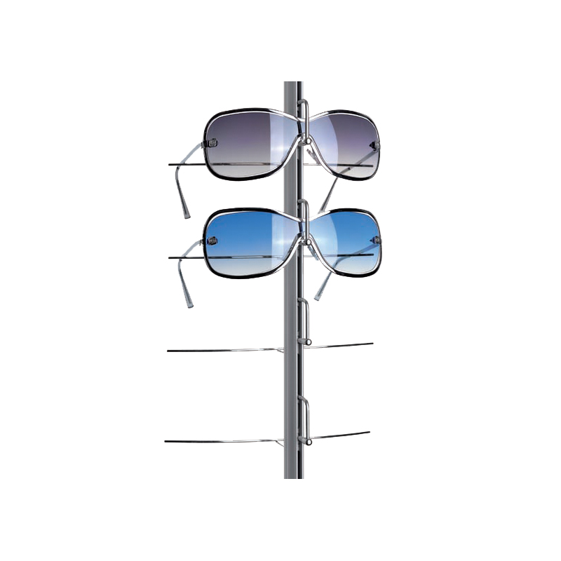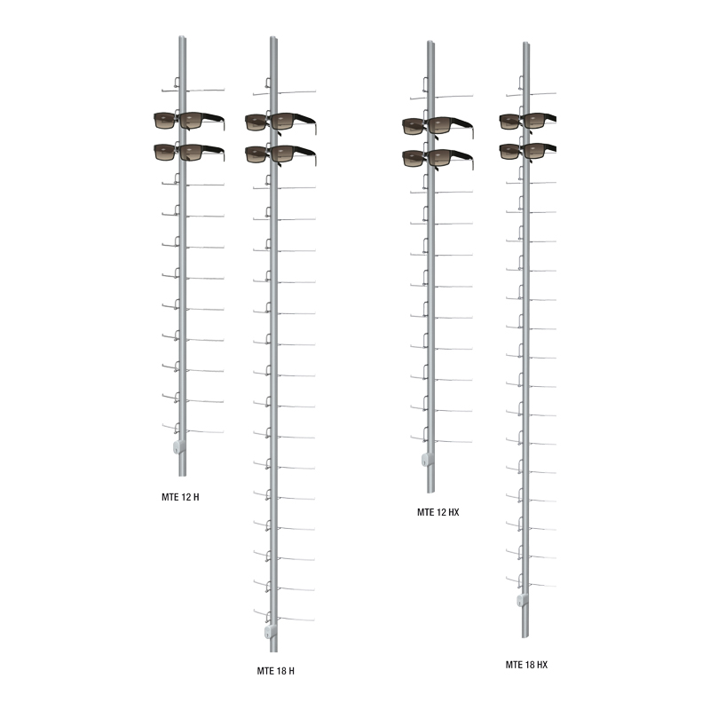 Colonne simple en profilé aluminium, pour fixation murale.Distance entre les supports de lunettes : 75mm.Chaque support à lunettes est équipé d'un manchon anti-glisse.Colonne pour 12 ou 18 lunettes.Livré avec supports repose branches lunettes en acier chromé.Livré sans fixation (à commander séparément).Pour les colonnes avec verrouillage, la hauteur de la patte de verrouillage est de 30 mm (permet de présenter des lunettes ayant un nez plus épais telles que les lunettes de soleil).