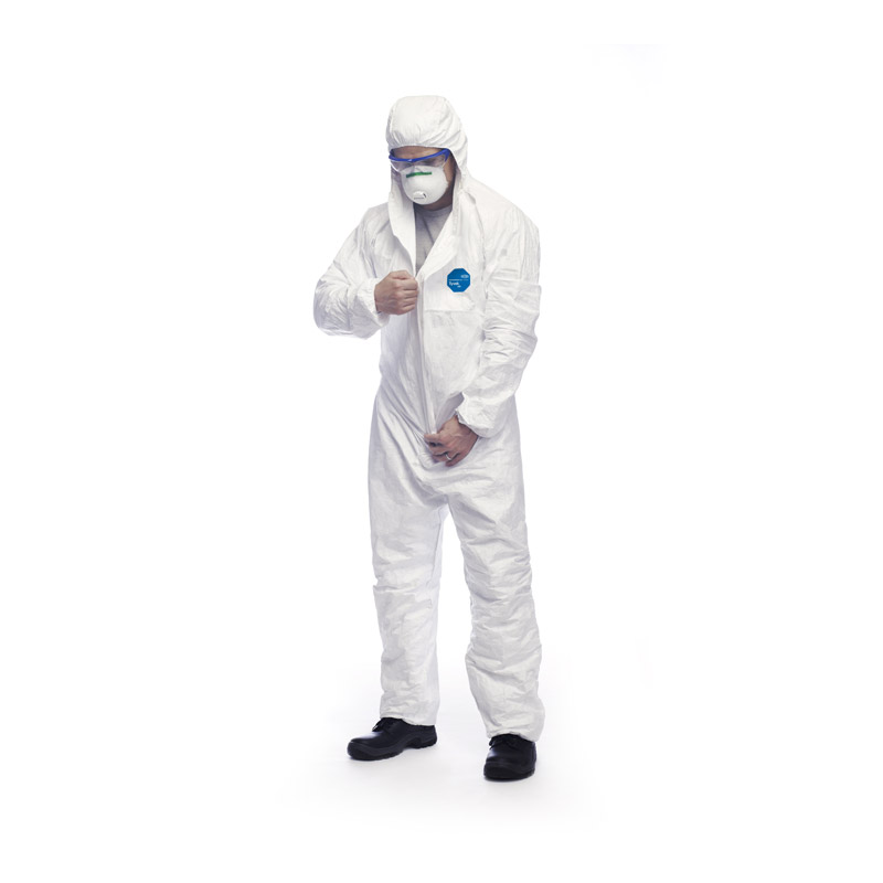combinaison en Tyvek® avec capuche élastiquée en 3 pièces, élastiques poignets, taille et chevilles,