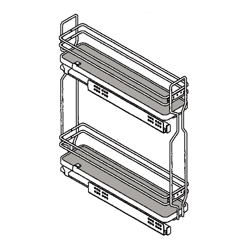 Corbeilles à fond mélaminé avec bordure et galerie en fil d'acier chromé.Coulisses à sortie totale sur amortisseur.