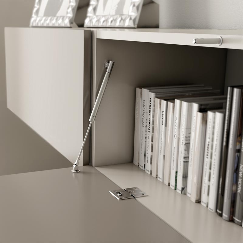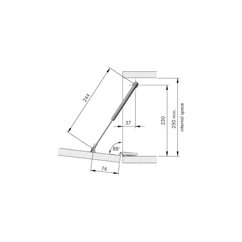 Utilisation du compas d'abattant : 1 compas pour une charge de 1 à 3 kg (selon hauteur de la porte) 2 compas pour une charge de 3 à 8 kg (selon hauteur de la porte)
