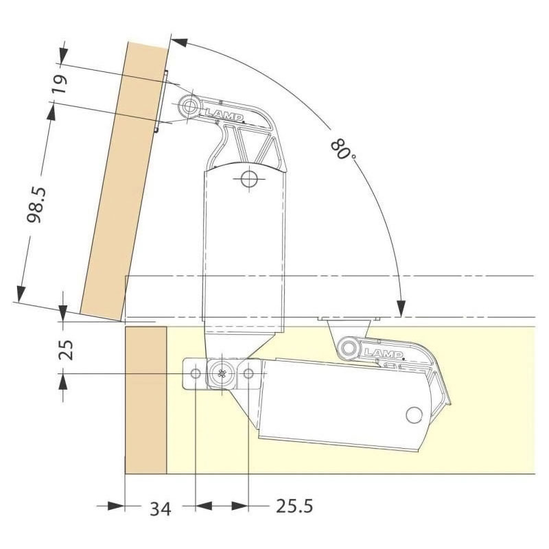 Le mécanisme à ressort soutient l'abattant à l'ouverture et le maintient en position ouverte (10°-80°).