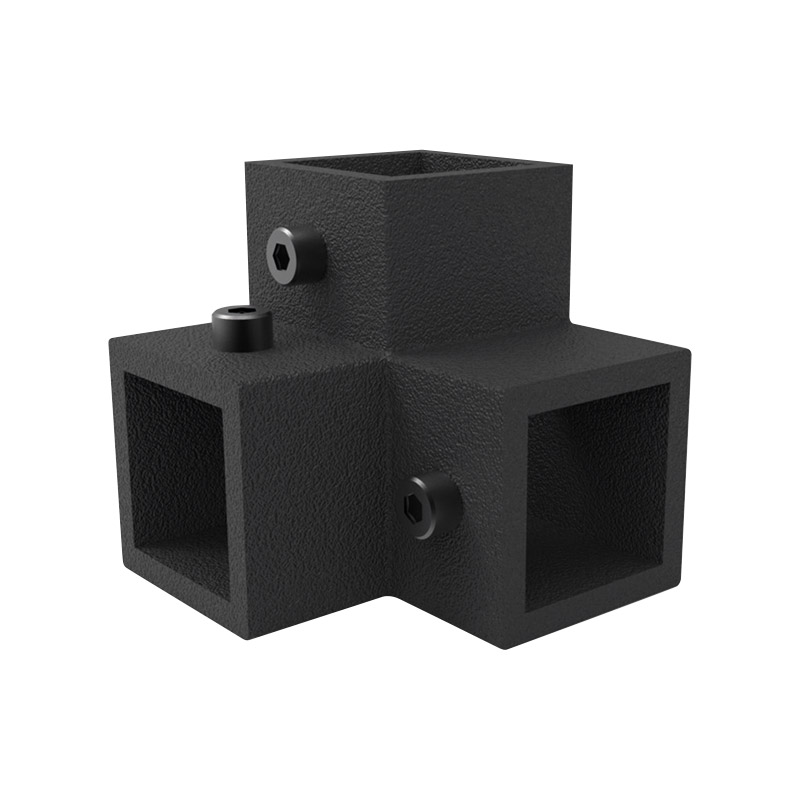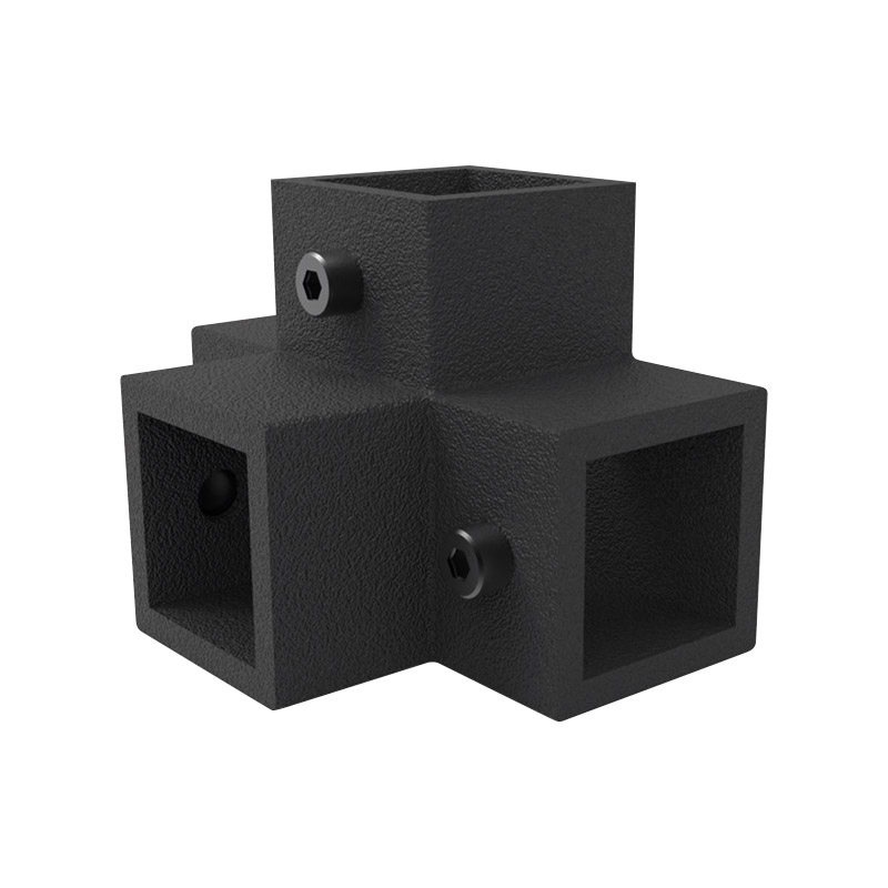 Connecteurs à 2, 3, 4 ou 5 voies pour la liaison des profils carrés AIRGO. Livrés avec vis de serrage.Les pièces de jonction (fixées aux bouts des profils) viennent s'insérer dans ces connecteurs, les vis de serrage maintiennent les profils en place, le tout assurant la stabilité de la structure.
