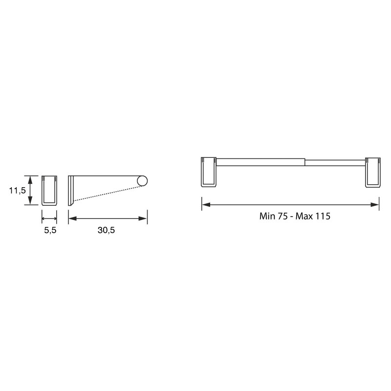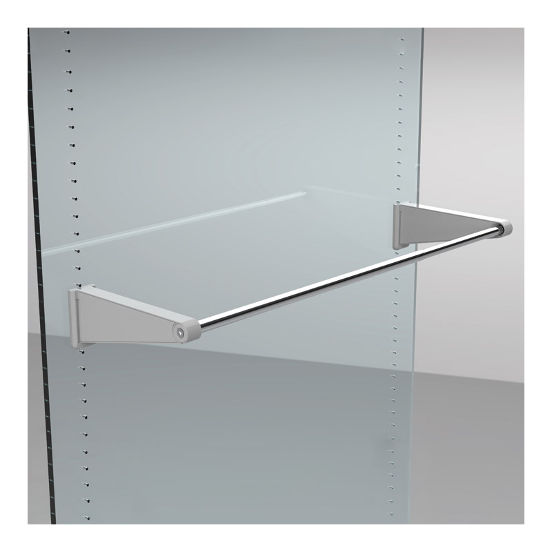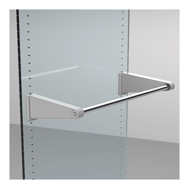 Ensemble de deux consoles avec un tube de penderie extensible. Consoles en nylon renforcé de fibre de verre.Tube de penderie extensible en acier chromé, décor gris alu.Livré avec fixations.Consoles : largeur 55 mm, hauteur 115 mm, profondeur 305 mm.