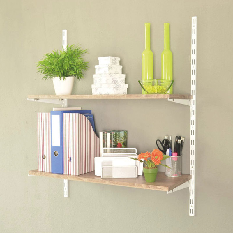 Console de sécurité en acier laqué avec 2 crochets et système anti-décrochement.Pose sur crémaillère murale au pas de 50mm Classic 50.Peut supporter une tablette métallique réf. 740 10800 ....., ou une tablette bois ou verre à l'aide des cavaliers simples (740 54100 00083) ou doubles (740 54110 00083). Pour une tablette verre, utiliser en complément les ventouses 740 54180 00000.
