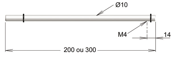 Un trou filetage M4 en bout du bras permet de visser les supports de la barre penderie (310 40140 .....), constituant ainsi un ensemble tablette/penderie complet.
