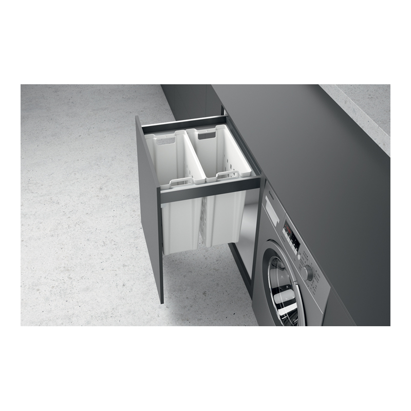 Corbeille à linge coulissante pour tiroir.S'adapte sur les profils tiroir AvanTech YOU hauteur 101 mm, longueur 500 mm.Le cadre AvanTech YOU Pull Laundry remplace le panneau de fond de tiroir.