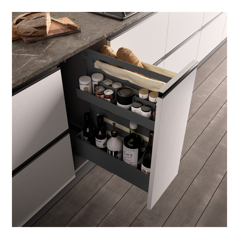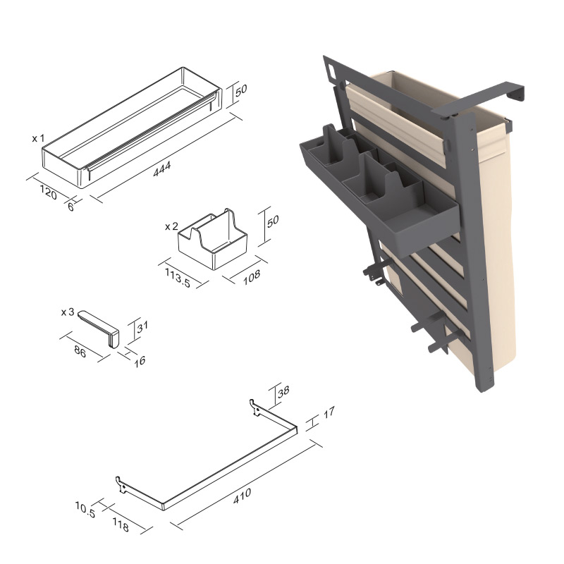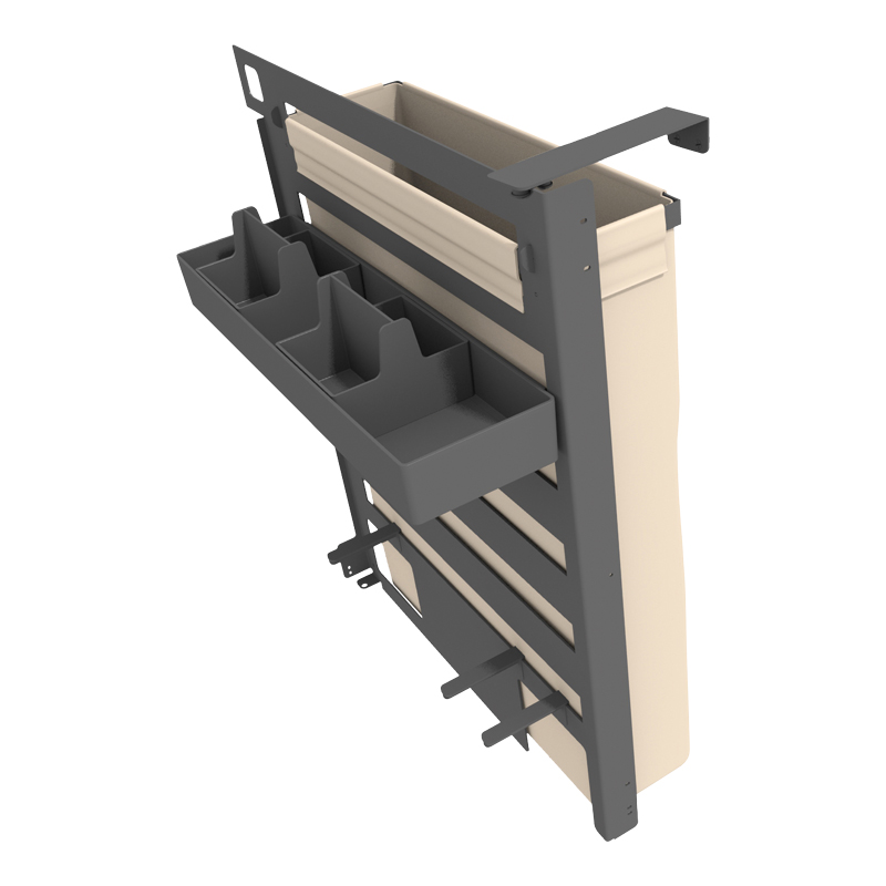 Fixation du cadre sur le fond du tiroir.Livré avec bacs amovibles en ABS et sac à pain.