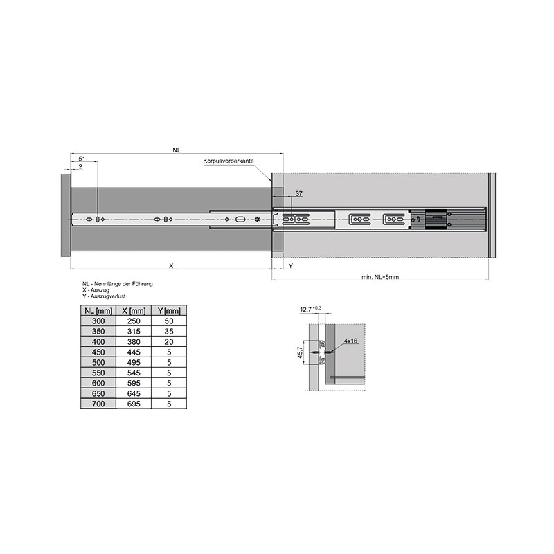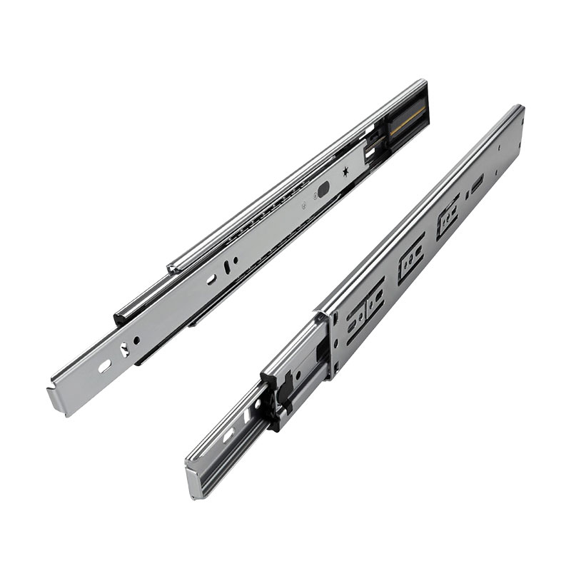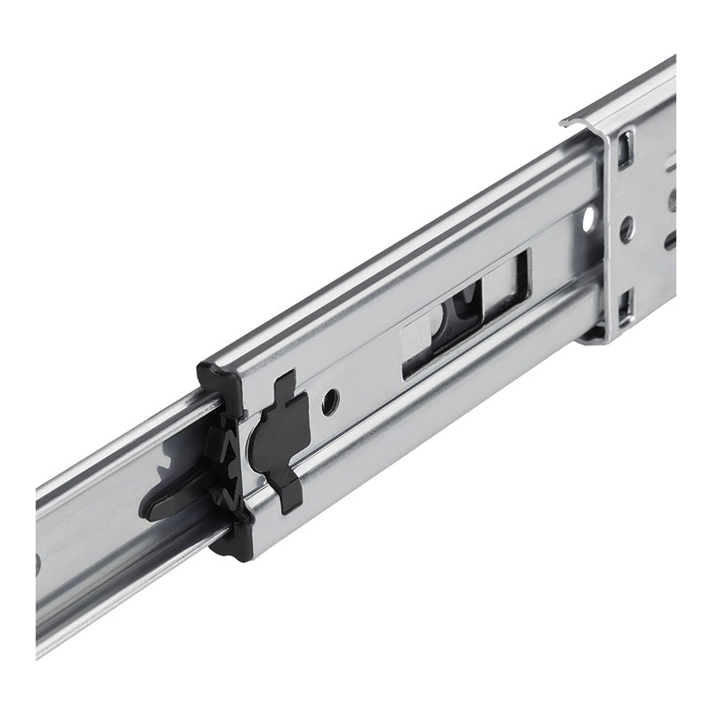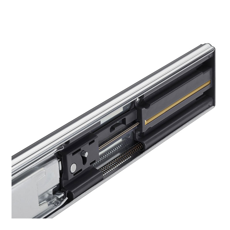 Coulisse équipée d'un rappel en fin de course sur amortisseur permettant une fermeture en douceur du tiroir sans choc et en silence.