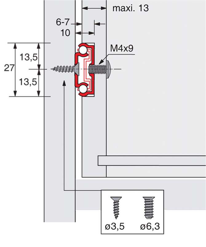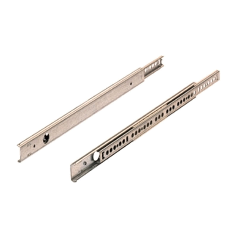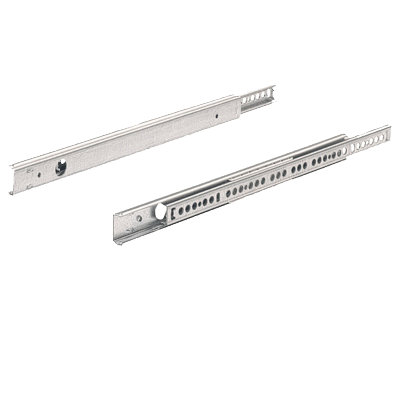 Coulisse de précision à sortie partielle avec butée de sortie et dispositif de blocage.Le rail de guidage et le logement à billes constituent un ensemble complet non séparable.Coulissage doux et stabilité latérale élevée par un guidage précis.Livré avec 2 vis M4x9.