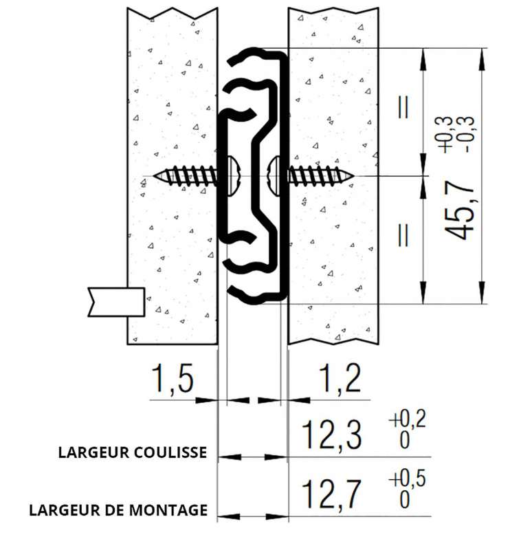 Coulisse à billes téléscopique - FR5001ECD : Schéma de perçage universel.Décrochage du tiroir en abaissant le levier situé dans la coulisse.Cran de positionnement garantissant le maintien en position fermée.