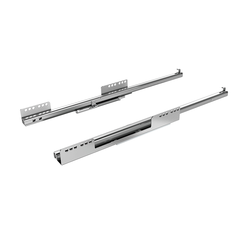 Amortisseur intégré pour fermer le tiroir en douceur et en silence.Capacité de charge selon la norme EN 15338, niveau 3.Acier zingué, convient à une utilisation dans des pièces humides.Conditionné par 30 coulisses.