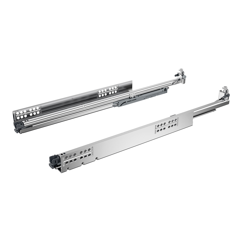 Coulisse invisible Push to Open pour tiroir bois. Ensemble comprenant une paire de coulisse.Installation par engagement avec clips 2D pour le réglage en hauteur et latéral sans outil (non inclu - à commander séparément).