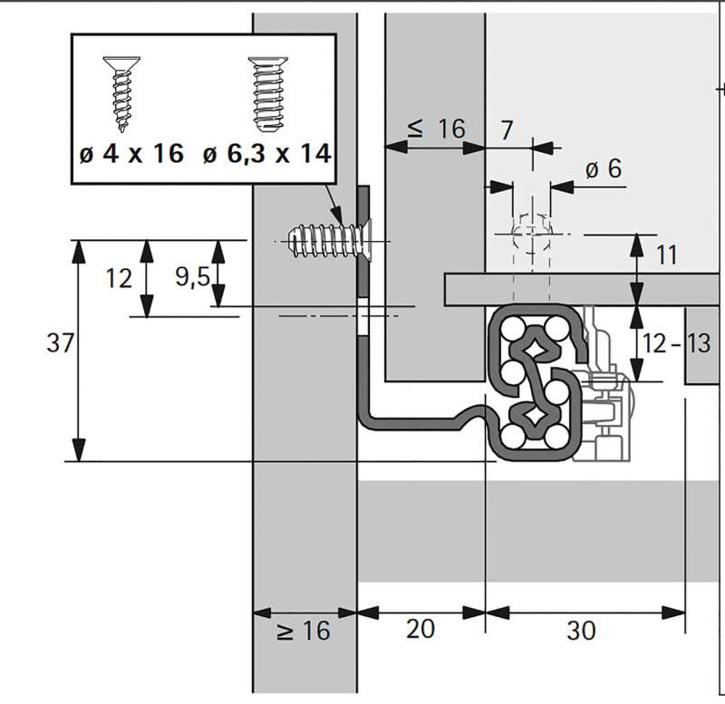 Se fixe à 37mm du bord de caisson dans la même position de perçage que les autres coulisses.