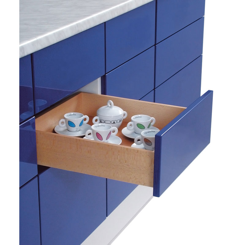 Coulisse montée avec mécanisme inversé permettant une ouverture automatique du tiroir.Une pression sur la façade suffit pour ouvrir le tiroir.