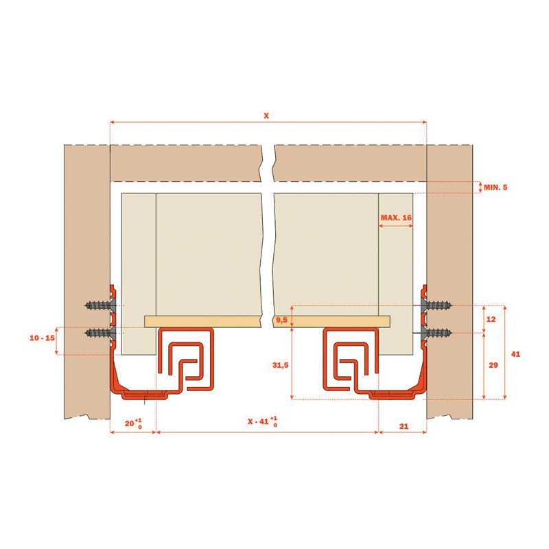 Coulisse montée avec mécanisme inversé permettant une ouverture automatique du tiroir.Une pression sur la façade suffit pour ouvrir le tiroir.