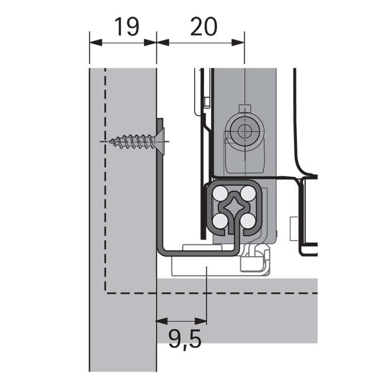 Coulisses sortie partielle avec rappel en fin de course.Pour caisson épaisseur 19 mm.Utilisable avec tous les profils InnoTech Atira.Stop Control : Ce dispositif de retour automatique ferme le tiroir en toute sécurité et préviens toute ouverture impromptue.