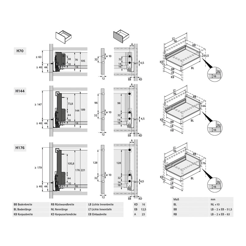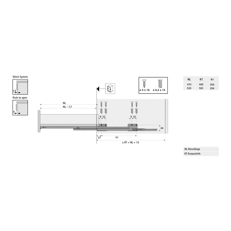 Coulisses sortie totale avec système d'amortissement intégré Silent System ou Push to open.