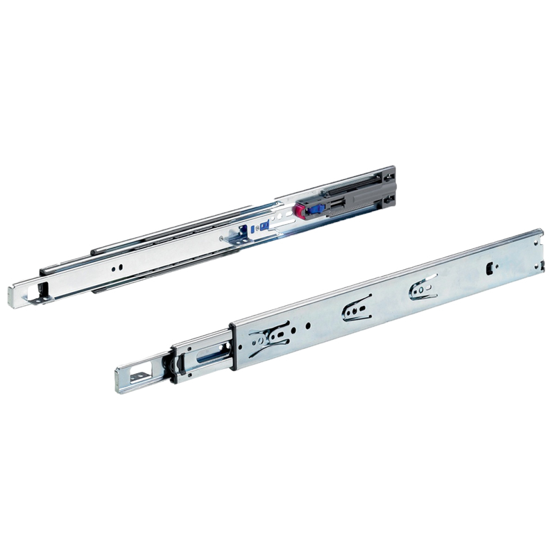 Coulisse à billes sortie totale équipée d’un levier de disconnexion.Coulisse avec mécanisme inversé permettant l’ouverture automatique du tiroir.Un jeu de 4mm entre la façade et le caisson est prévu pour un bon fonctionnement.Blocage en position fermée.
