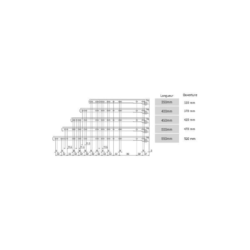 Coulisses de tiroir à galets silencieux, Gamme économique.Vendu à la paire.