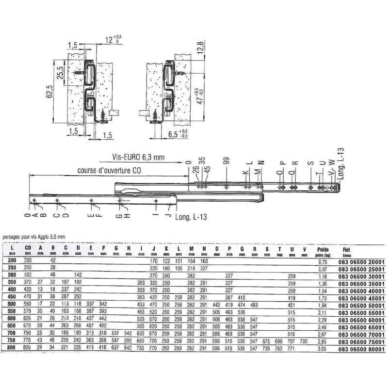 Coulisses de tiroir à galets silencieux en delrin.