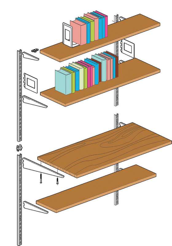 Crémaillère en acier laqué époxy de section 25x12mm, avec perçage au pas de 32mm.La double perforation permet de juxtaposer des tablettes sur un même niveau.Pose en applique. Fixation par vis et chevilles (non fournies).Charge : 55kg/200mm.