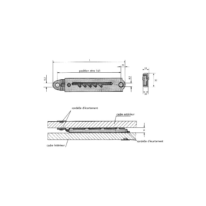 Crémaillère acier de relevage à 5 ou 6 crans.Montage réversible droite ou gauche.Fonctionnement silencieux.
