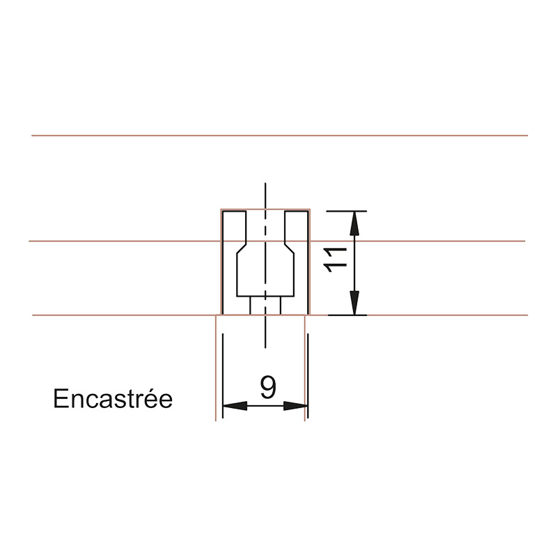 Crémaillère classique de section 9x11mm à simple perforation étroite. Pas de 50mm.Fixation par vis Ø 4mm, avec entraxe 250mm.Pose en applique ou encastrée.