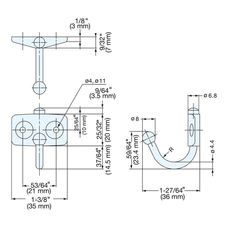La fonction friction sert à éviter des mouvements du crochet lors de vibrations.La pointe du crochet est de forme arrondie pour une sécurité d'utilisation.