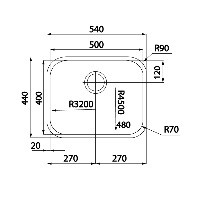 Cuve inox à fixer sous le plan de travail.Équipé d'une bonde manuelle Ø90 avec coupelle inox ramasse déchets, siphon, fixations et colle silicone.