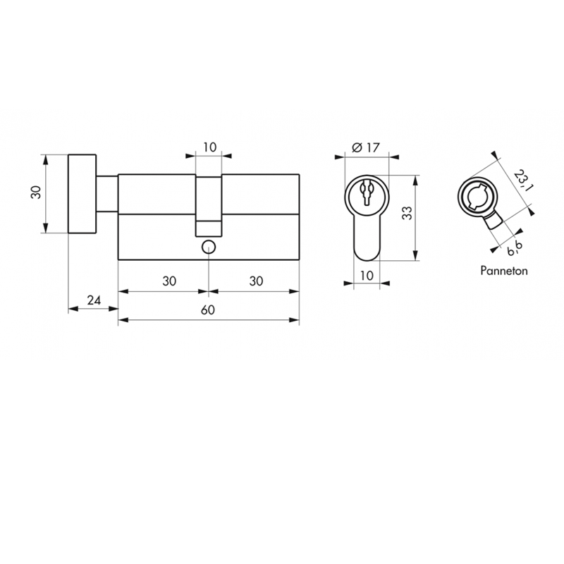 Profil européen.Panneton anti-arrachement.Livré avec 3 clés en acier nickelé.