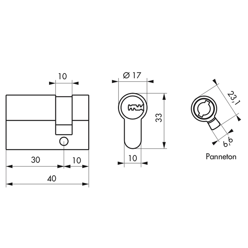 Sur demande : fonction urgence : On peut introduire une clé dans le cylindre et tourner le panneton même si une clé est engagée à l'intérieur (panneton débrayable).