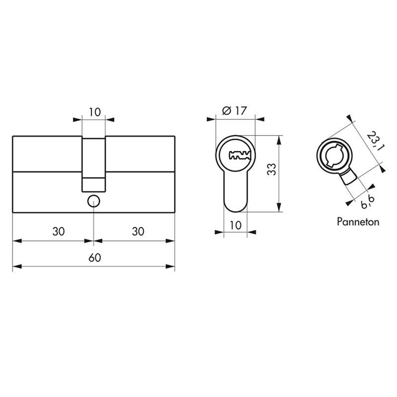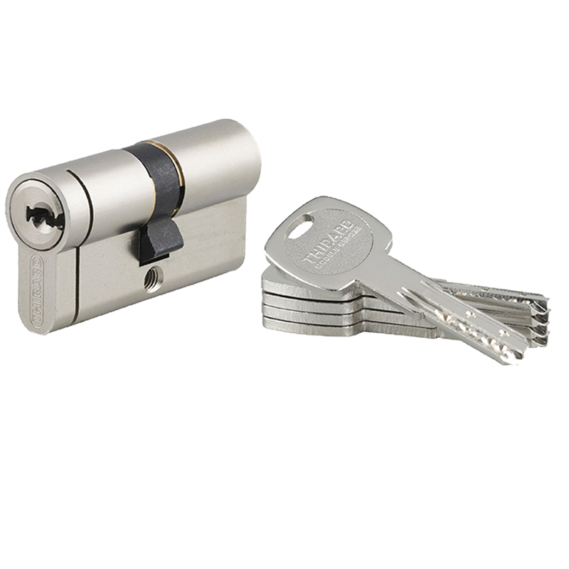 Profil européen laiton.Mécanisme à 8 goupilles contre le crochetage.Protection contre le perçage par aiguille et 1ère goupille et poussoir en acier trempé.Protection contre l'effraction de la partie saillante du cylindre (anti-snap).Panneton anti arrachement.Livré avec 5 clés plates longues réversibles laiton nickelé + carte de propriété.