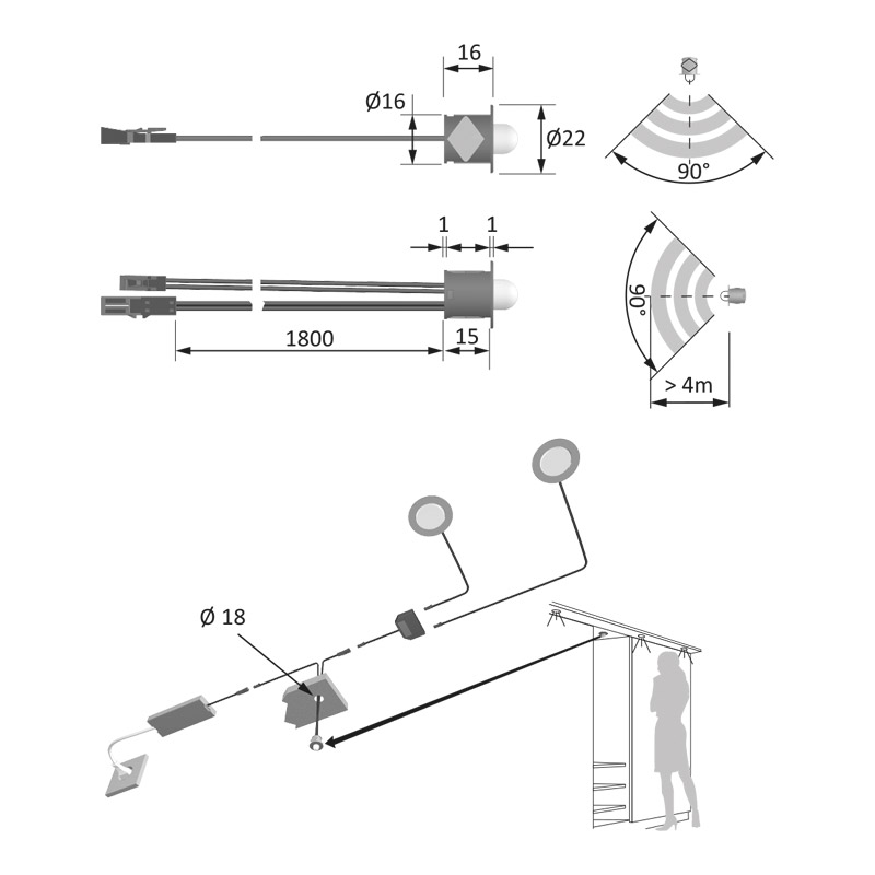 A encastrer. Câble d'alimentation longueur 1800 mm