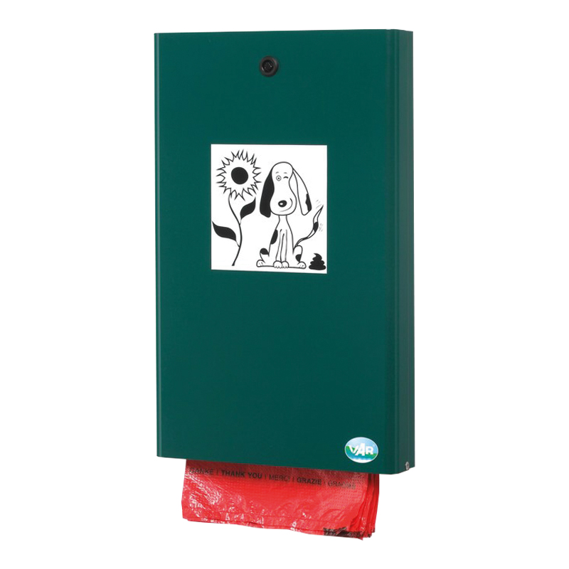 Distributeur de sacs pour déjections canins en acier galvanisé avec revêtement par poudre polyester époxy Anti-UV.Equipé d'une serrure triangulaire (1 clé).Livraison avec pictogramme et accessoires de montage pour fixation au mur ou sur poteau.