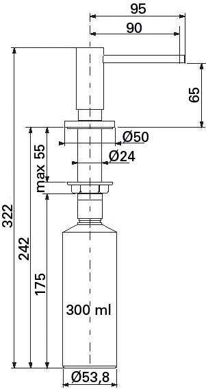 S'encastre dans le plan de travail.Tête orientable.Collerette Ø50mm.Perçage Ø26mm et 35mm.Serrage maxi 55mm.Remplissage par le haut.